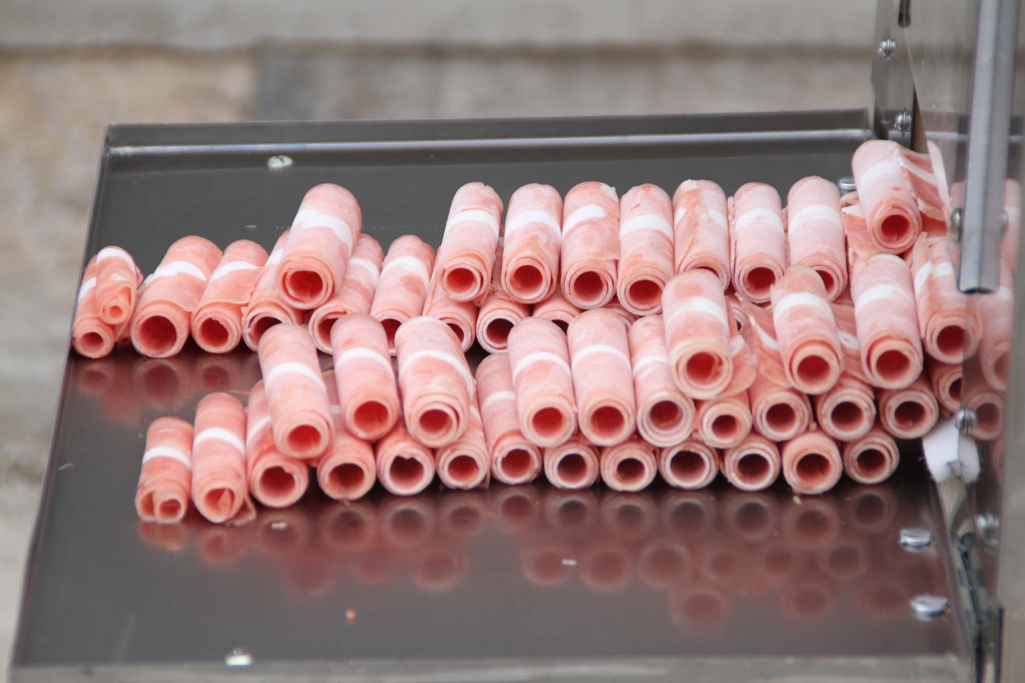 鴻祥瑞數(shù)控切片機HXR-S2型一次可以切2卷(板)羊肉或肥牛,鴻祥瑞數(shù)控切片機采用西門子PLC控制,步進電機傳動,徹底解決了機械切片機故障率高的難題,真正意義上實現(xiàn)了全自動化。紅外線感應(yīng)安全防護裝置(選裝),公司通過市場調(diào)研,特研發(fā)一次性刀具,解決部分客戶磨刀難的問題。雙導(dǎo)向推進器,自動進退,起刀高度18CM,可以立著切肥牛板,調(diào)整厚薄不用停機,可根據(jù)所需要的厚度在數(shù)控開關(guān)自動加減,每小時可切肉50-100公斤,工作臺采用食品專用有機塑料板制成,保證食品安全、衛(wèi)生,肉卷無需解凍,可直接上機操作,并可切出多種卷形(粗卷、細卷、長卷),成形整齊、美觀,并成排列狀,容易包裝,加工效率高、安全、節(jié)省人工。是大型火鍋店、大中型牛羊肉批發(fā)商的理想選擇。